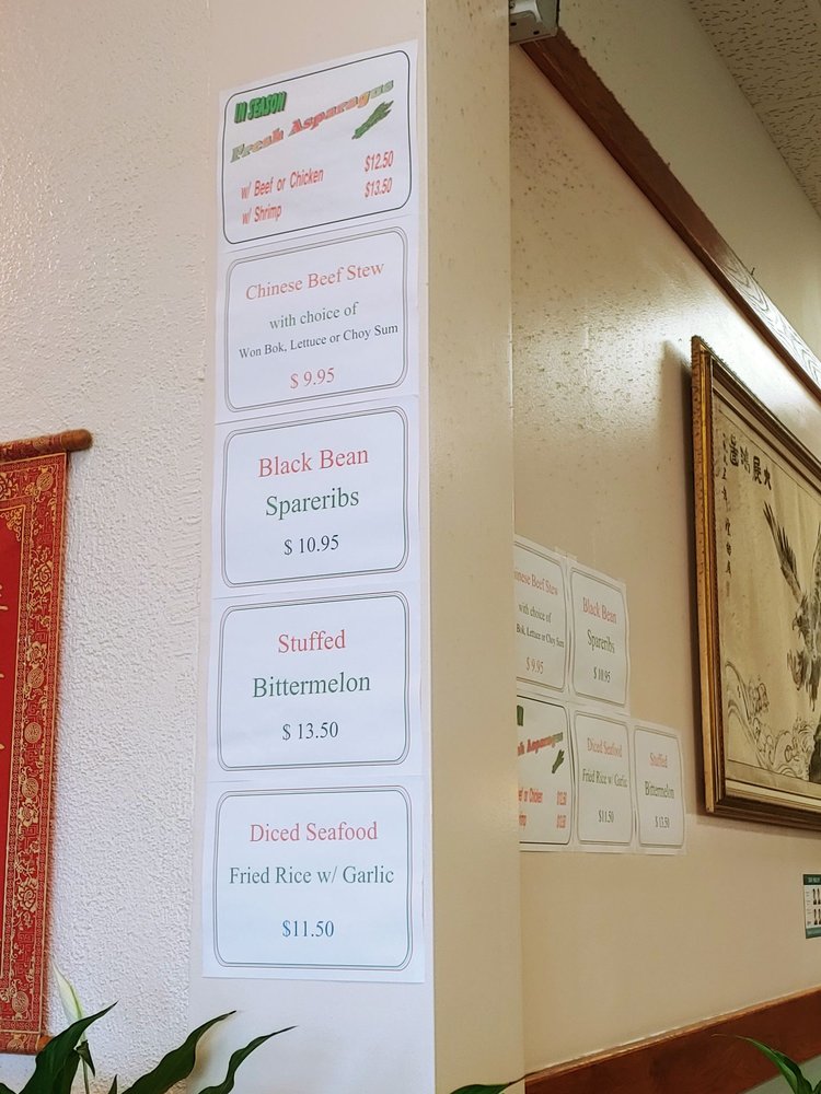 Beef & vegetables. cold ginger chicken. pot roast pork. steam rice. crispy won ton.